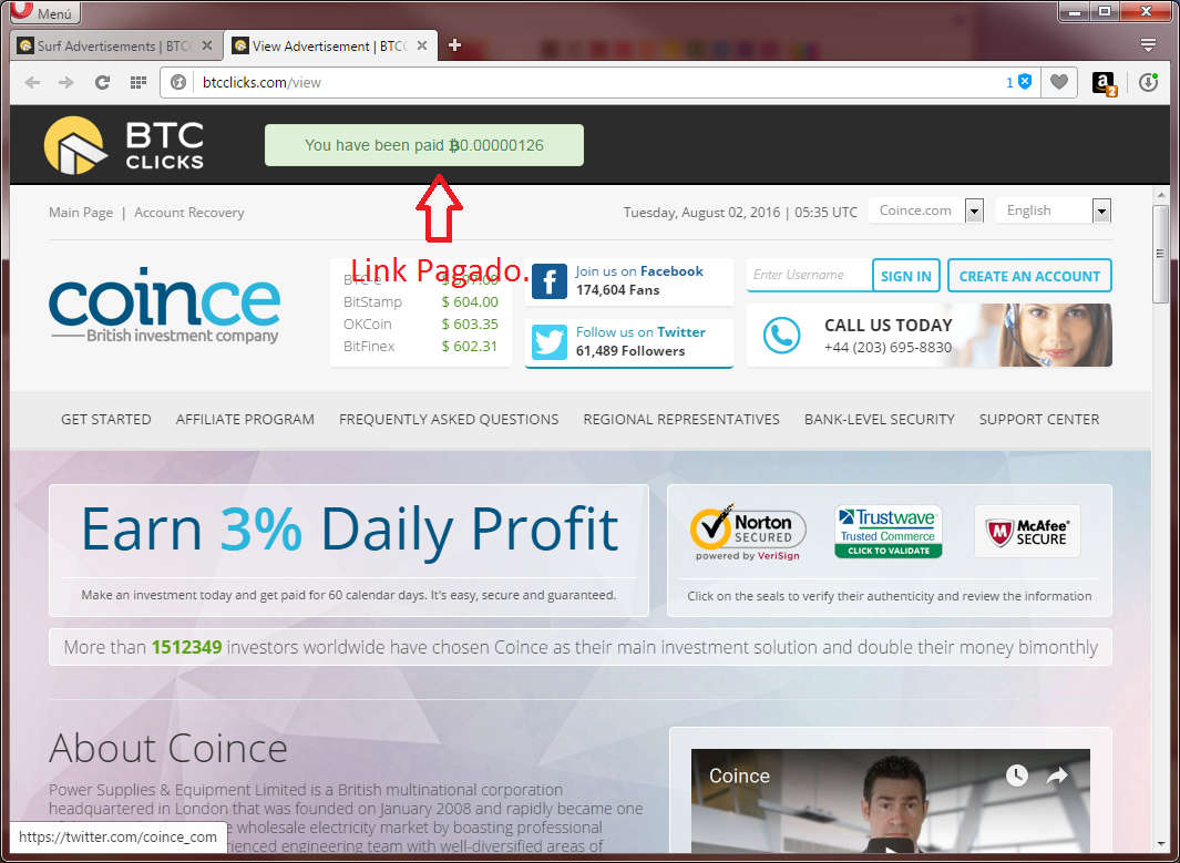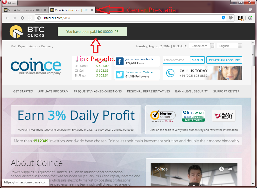 7. Debes terminar todos los link uno a uno y estos se liberaran en 24 horas de nuevo para hacer el mismo proceso todos los d�as y as� ganar Bitcoin a diario.